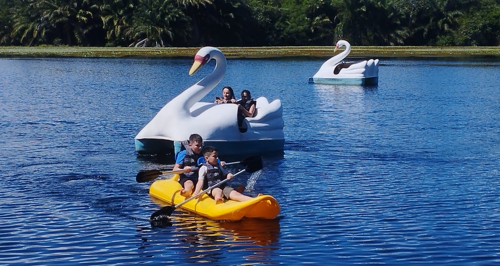 Desfrute de passeios relaxantes em pedalinho cisne ou tradicional no lago.